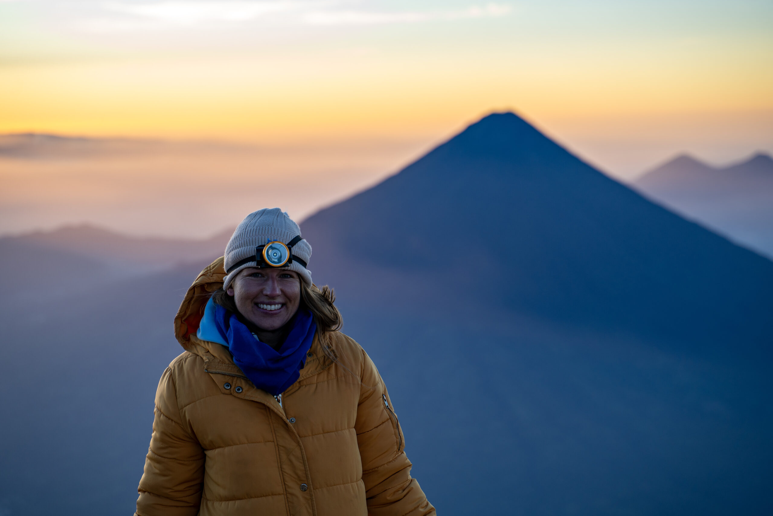 To najtrudniejszy fragment całej wyprawy – zimno, ciemno i czeka Cię bardzo strome podejście po luźnym wulkanicznym żwirze (pył wulkaniczny). Startujesz ok. 4 rano i przez prawie 2h walczysz z życiem i przeklinasz siebie za podjęcie decyzji o jakiejkolwiek wspinaczce. Ale nagroda jest ogromna: wschód słońca nad oceanem chmur i 360-stopniowa panorama na inne wulkany oraz Gwatemalę. I jesteś na szczycie Acatenango!! (3976 m n.p.m.) – ile osób może pochwalić się takim wyczynem?
